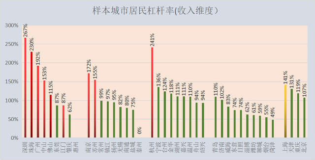 据此,我们测算出样本城市的可支配收入维度的居民杠杆率,如下: