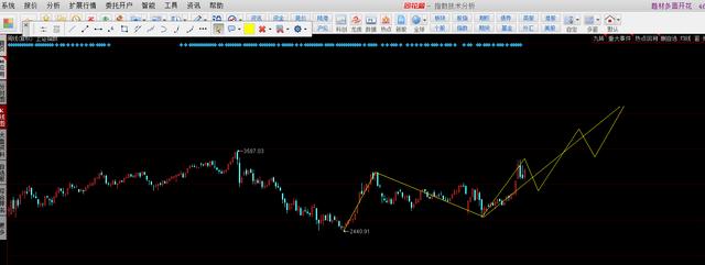 周线,5月时候我提出来周线3浪,当时大盘虽然维持上行走势,但速度较慢而且有曲折,当时判断周线来看2440点到3288点是1浪上行,而后到2646点是2浪回调,4月底五一期间判断了确认周线2浪回调的结束,从而走的是周线3浪上行周期,当时提出来一个概念,市场需要继续加速上行才对得起周线3浪这个词。