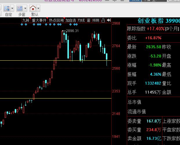 这样的情景就不得不提到之前说过的去年盘面出现的切换强弱走势,A股市场对应的调整周期,上证指数跌的日线一波分别是去年7月和10到11月,而这期间可以看到创业板多强几乎只有很短暂的下探就会被拉起来,整个那个时间段就是大盘弱创业板强的分化,上行周期创业板拉着大盘上,下行周期大盘拉着创业板回调下。而现在看当下市场则可能要切换成两者身份切换过来,这也是符合这一波到明年春的行情上证指数四千点甚至4500点的判断而创业板最低的空间2900点已经达到虽然依旧可能继续上行但空间3300附近也不那么大的判断。
