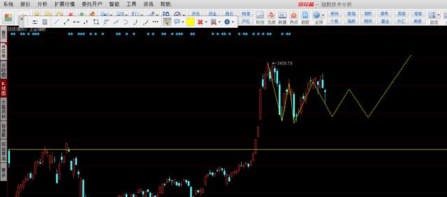 然后我们来看,既然看明年春的目标是四千点或更高一些,如果上证指数这里再次跌破颈线33200点的话,因为在3200到3400震荡比较久,跌破一旦缩量就会类似去年的4月那样就成了套牢密集区,后面想要过去就难度较大了,这样的话时间上等可能就难以达到这一波周线3浪的行情,所以上证指数现在看来较大可能会在这里震荡而非之前担心的回调较深模式。