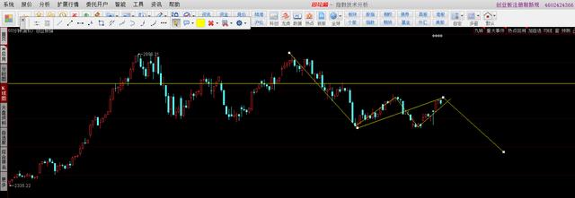 创业板,周五到周末提到的这里会在小的周期里面走一个类似ABC浪的走势,这是周五早盘看到创业板出现强有力上行后得出的结论,所以周一早上才去追创业板的,而今日的涨幅则基本已经到了这个ABC结构的标准。接下来几种可能的走势,保持这两天的上行速度继续向上,则这就是彻底的颈线得到支撑向上开始上行周期,调整已经结束。暂时看不出来这样的概率大,需要一个中大阳来才能改变趋势确定这样的走势。第二种则是,这是个ABC浪反弹结构,明天基本走完而后继续下行,下行之后会出现破颈线的走势,当然别怕,这颈线出现有效跌破的话,也很可能也是创业板调整结束的时间。两者都是,创业板的调整从时间来看也是要进入后半段了。
