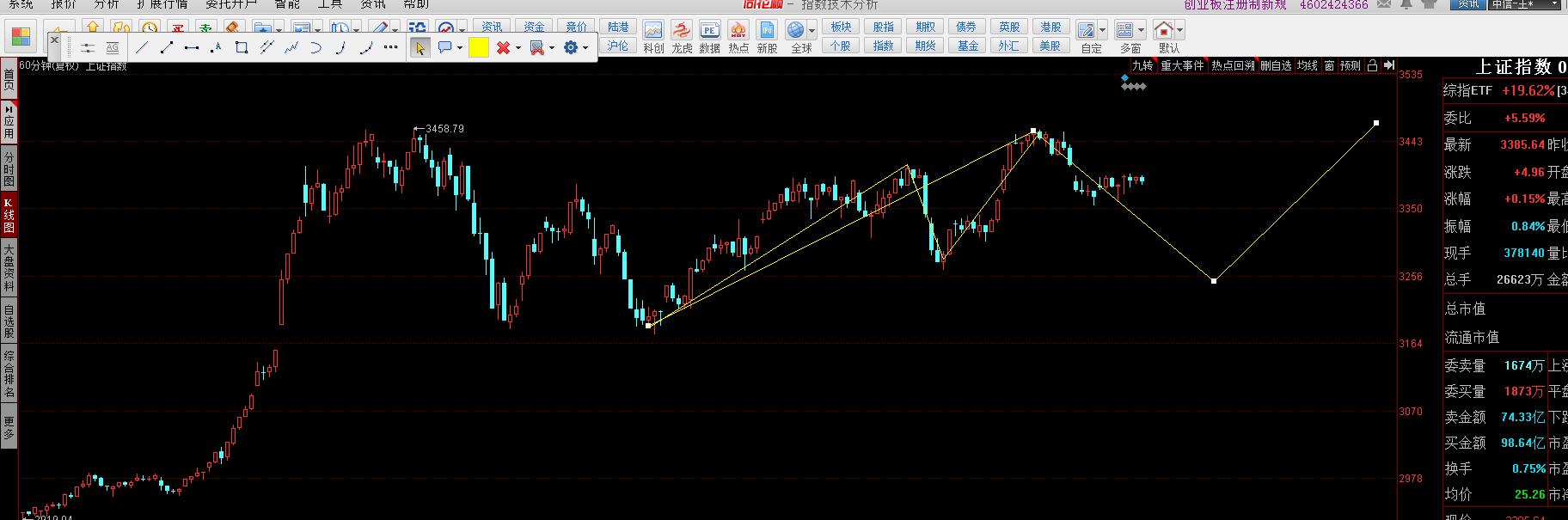 大盘,弱反弹,如果这里周期调整并非结束则接下来继续调整概率很大,如果按之前预期的大盘这里是7月27日上行的ABC浪结束而后的调整,时间和空间并没够,这里依旧倾向看继续回调,当然回调的整体基调依旧是震荡。并非那种破坏性很大的形式。当然3458点以来的震荡,是会结束的,并且结束后是向上的,这个方向一定要心里有底。