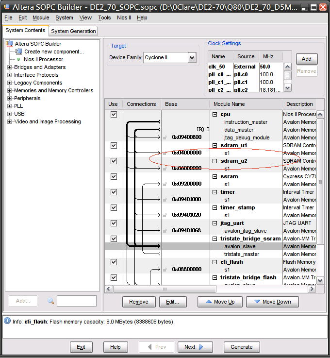 II,準備做軟硬體設計,就可能像我一樣,必須將原本Sdram_Control_4Port控制的SDRAM,改成由Avalon