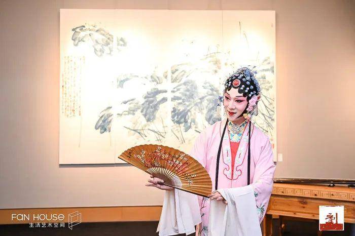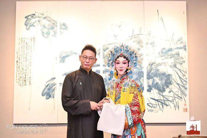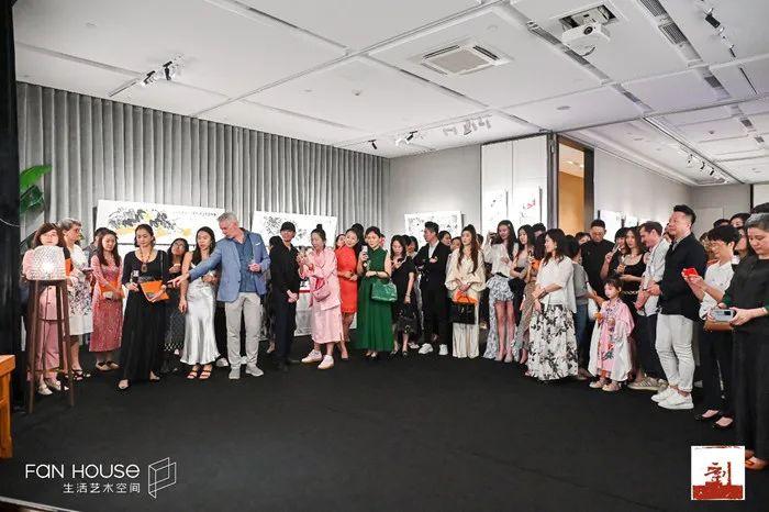 让众宾客宛如游走于单色荷花池之间,让一切返璞归真,一幅画是一气呵成,最终作品前,一切景语皆情语,尽诉心中皆在画中,由心入境开幕式进入了美意洋溢的此起彼伏的顶峰。最后董飞老师以一曲《盛世霓裳》压轴,当晚众宾客无不为之动容、动情、动心。让他们最直抵心扉的感叹莫过于——今夜同感同见证“梅兰芳第三代传人男旦董飞,与齐白石第三代传人刘少白,今天相聚一堂,这是何等的难得,再续当年的梅兰芳,齐白石二位大家的情谊!”