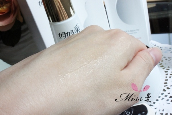 比较出乎我意料的是这个胶原肽滋养爽肤水:本以为会是比较稀的,不料是趋于乳液状态的精华水,以为这个质地会不好吸收还会比较油,但是涂抹开来却像水般一下子就吸收了,不油不腻,摸起来凉凉的滑滑的。脸部的含水量也从原来的33%提升至了50%。