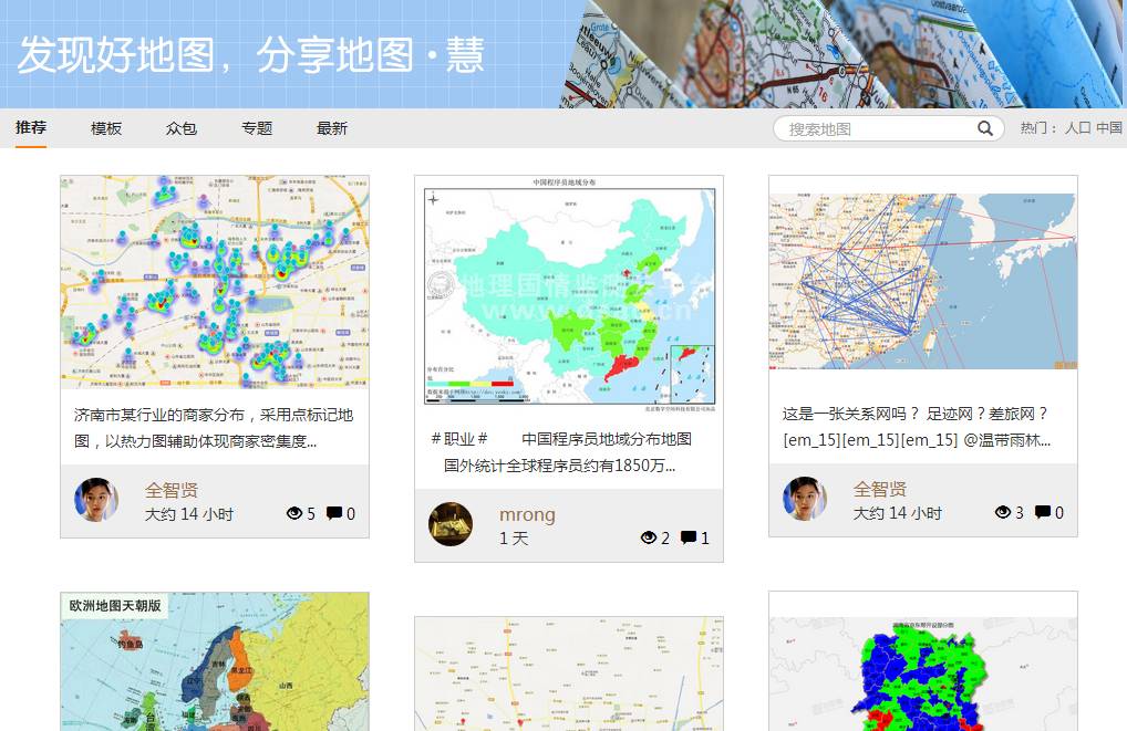 地图慧非常贴心的提供了微博及QQ快捷登陆方式。登陆后,点击“发现”,能直观看到地图慧团队推荐及收集到的一些好地图。对地图感兴趣的童鞋可以每天上这里看看,一定会有新发现哦。