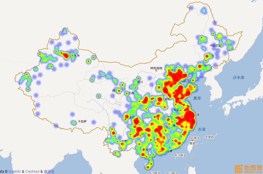 先秀一下,我用地图慧做的热力图如下: