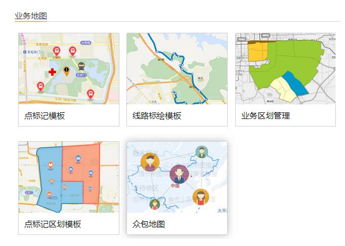 地图慧提供了多种地图模板:统计地图(分段设色、柱状地图、时间序列、脚印地图等)、业务地图(点标记、路线标绘、业务区划、众包地图等)、高级地图(车辆监控、路线规划、分单管理、巡店管理等),我比较常用的是脚印地图,点标记地图、业务区划、众包地图这四个。