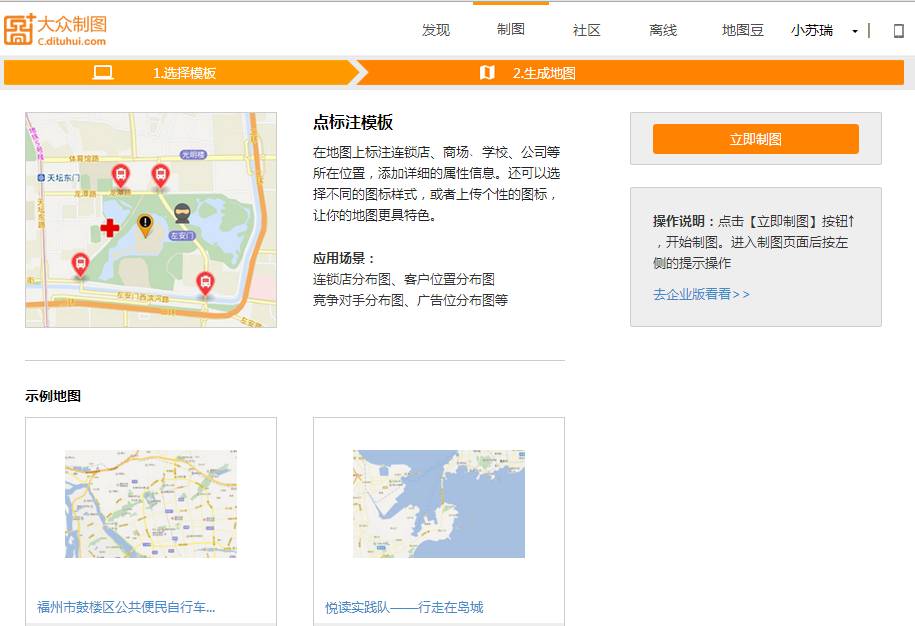 进入点标记模板,点击“立即制图”,简单填写地图描述信息后,即可进入正式制图界面。