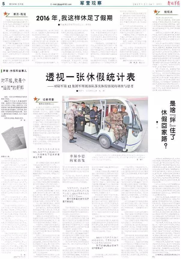 2016年,集团军休假情况整体向好,以往最难落实的干部休假今年也有大幅度提升,平均休假率达94.5%。95.6%的基层干部休假率,更是创下了近年新高。