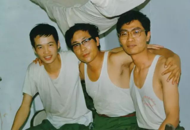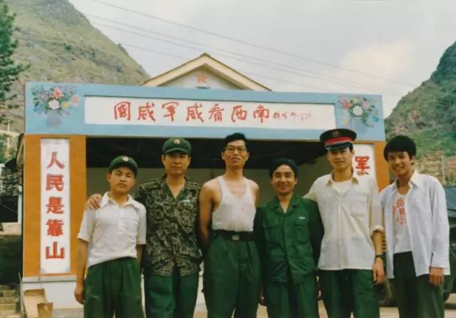 这是在云南前线指挥所的合影。从左到右:司机、牟健为、朱苏进、徐文良、我、记者组司机小康。
