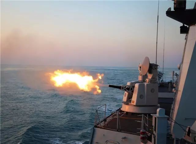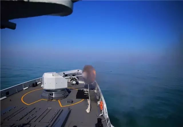 当天,由导弹驱逐舰长沙舰、海口舰和综合补给舰骆马湖舰组成的远海训练编队,组织了一场带有战术背景的火炮射击演练。