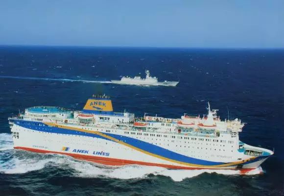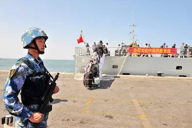 2011年3月,中国海军徐州舰疾驰地中海,为搭乘中国在利比亚撤离人员的“卫尼泽洛斯”号商船护航。