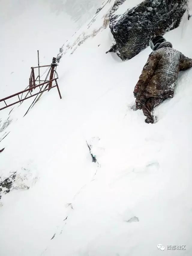 这组照片中的主人公是来自驻守在海拔4655米,被誉为“云中哨所”詹娘舍的戍边官兵。3月12日,由于哨所有限通信线路突然中断,詹娘舍哨所哨长李玉成带领班长马关敬、上等兵黄伟轩、王鹤宇对通信线路进行巡线。