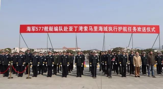 今天上午,中国海军第二十六批护航编队从浙江舟山某军港解缆起航,前往亚丁湾、索马里海域接替第二十五批护航编队执行护航任务。海军副司令员苏支前代表海军司令员沈金龙、政委苗华,到码头为护航官兵送行并讲话。