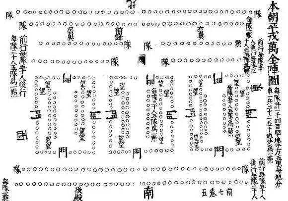 经过多次与辽军较量之后,以步兵为主体的宋军逐渐形成了一套比较固定的战术。每逢临敌,统兵将领会根据皇帝所授的“阵图“展开队形。这些阵形中,尤以“平戎万全阵”最为出名。这是一个由前、后、左、右、中五军组成的约十七里见方的巨型方阵,主力步兵猬集在中央,布成三个“车营”。步军枪刀手在前,杂以旁牌、标枪,阵前布以木拒马或大车,称“阵脚兵“。强弓劲弩在其后排列。在方阵的前、后、左、右,还部署了少量的骑兵担任警戒与掩护,以防敌骑“奔冲突驰”。