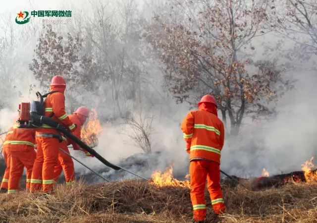 一声哨响,该营山火防范应急预案启动。5分钟后,由40余名官兵组成的应急救火分队集结在营门口等待出征命令。“快速登车!”只见营长一声令下,穿着消防服的小分队人员,携带风力灭火机、灭火器、铁锹等百余件灭火器材,立即乘车赶往距营区6公里的着火林场。