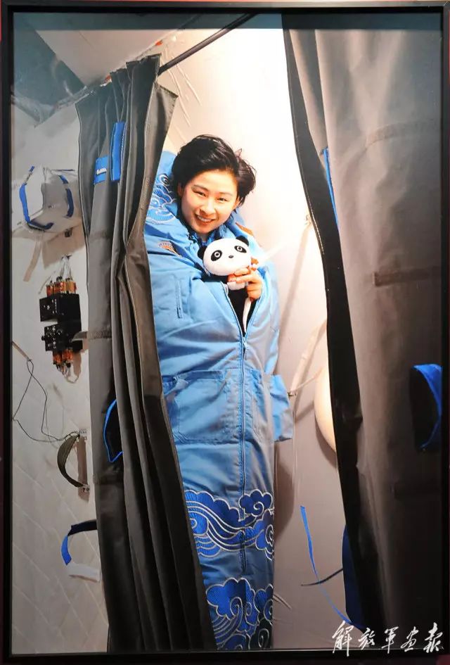 “晚安地球”。天宫一号舱内,刘洋钻进睡袋准备休息。航天员在太空中睡觉不是“躺”着的,而是“站”入固定在舱壁上的睡袋里,免得睡着了漂到别处。(提供/景海鹏 刘旺 刘洋)