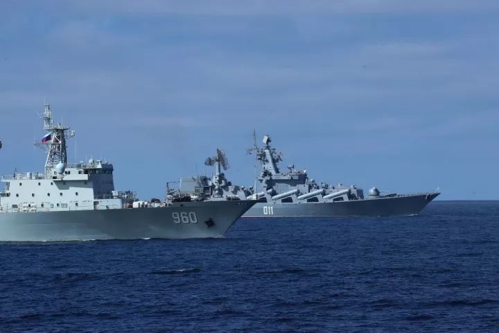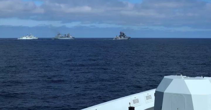 ▲当地时间9月22日上午,中俄联合军事演习港岸准备阶段圆满结束,正式进入海上实兵演练阶段。