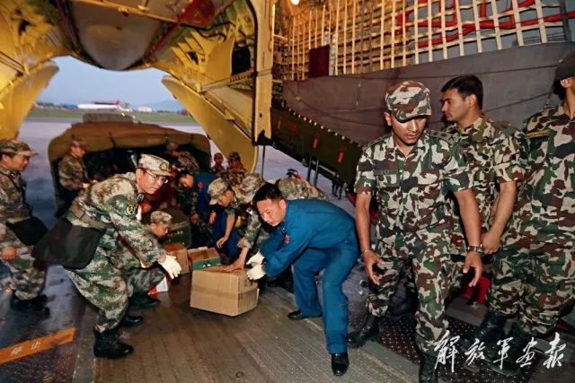 2015年4月27日,中国空军派出的第一架满载救灾物资的伊尔-76运输机,飞越喜马拉雅山,前往加德满都执行救灾任务。