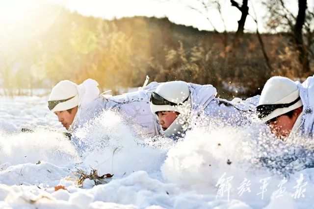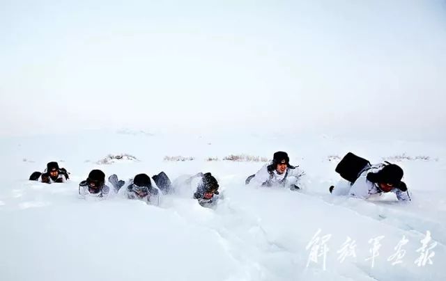 某特战旅女子特战队在雪野里低姿匍匐,隐蔽接敌。