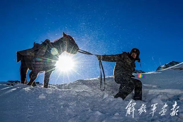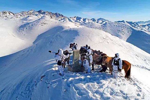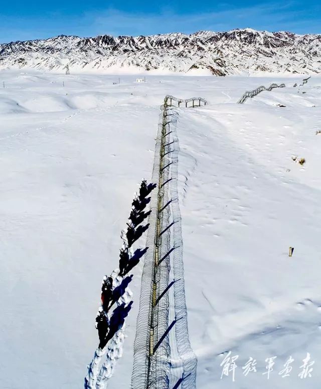 新疆军区塔克什肯边防连官兵在边境线上巡逻。