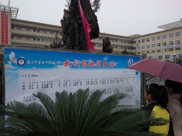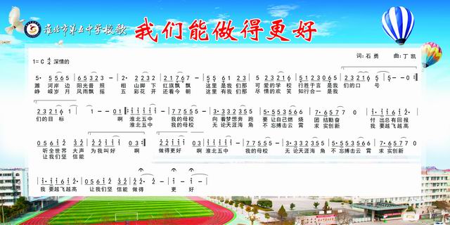 日前,淮北市第五中学在学校门口显眼位置,制作了宣传展板,上面赫然展示着学校的校歌——《我们能做得更好》,标志着该校校歌正式确定。