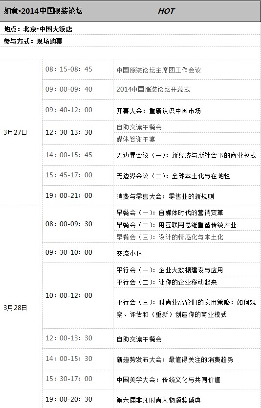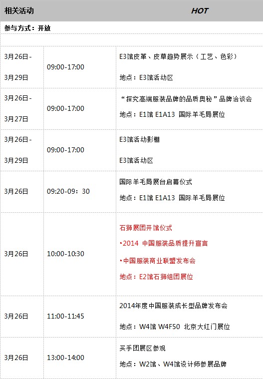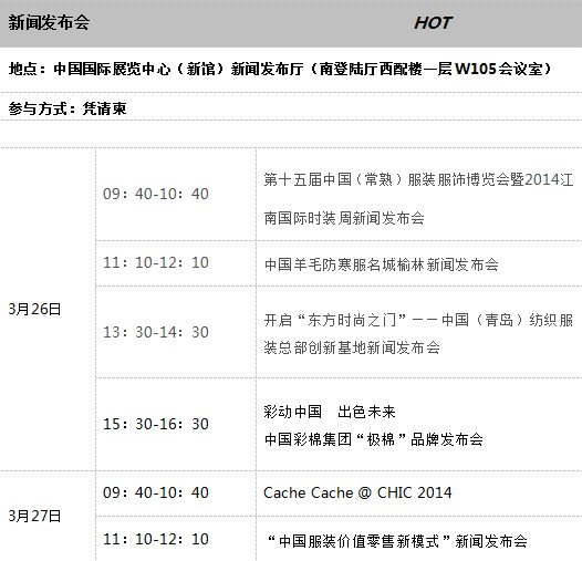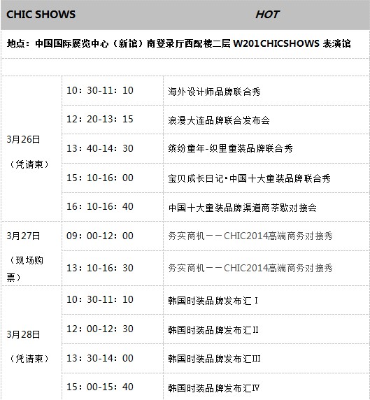 附:第22届中国国际服装服饰博览会(CHIC2014)活动日程