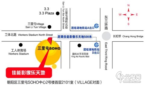交通:乘113; 115电; 406; 416; 431;701; 758路车,在朝阳区三里屯下车,步行距离约 100米。