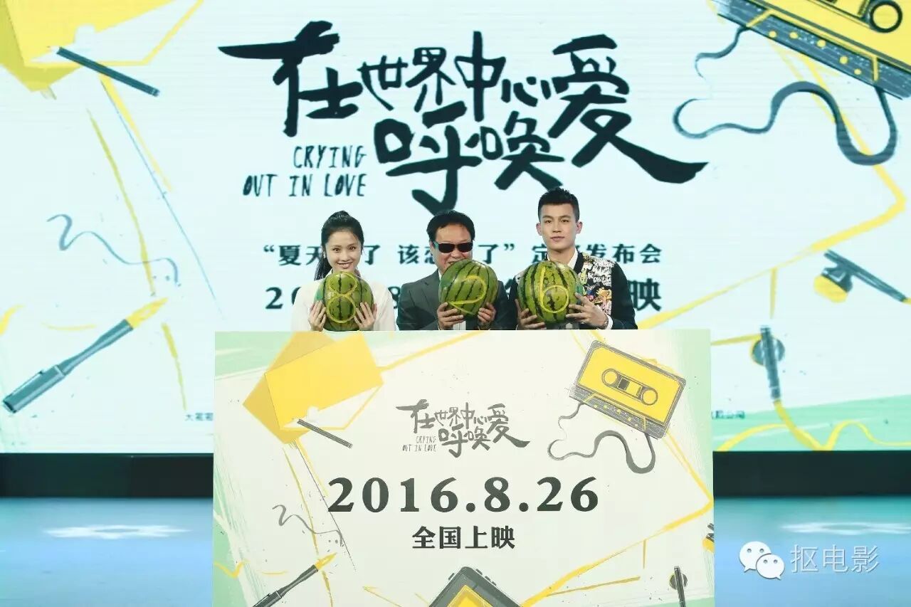 《在世界中心呼唤爱》原著小说是日本小说家片山恭一的代表作,风靡亚洲畅销700万册。该小说后来被改编成了同名剧集与电影,电影版《在世界中心呼唤爱》更被誉为“亚洲青春爱情片的鼻祖”。在发布会现场,导演郭在容表示,日本版是自己心中的经典,并且在十年前就打算翻拍这部作品,但当时忙于《假如爱有天意》的拍摄错过了时机,如今来到内地发展的郭在容重新将这部作品搬上银幕,并邀请内地两大人气偶像加盟,了却自己一桩心愿。同时郭在容大赞两位主演敬业,片场中受伤都坚持完成拍摄,轻伤不下火线,并表示特别“心疼主演”。对此,欧豪与张慧雯在发布会尾声,特意将刚切开的西瓜,一起喂导演品尝表示敬意。