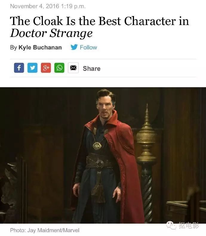 还有外网的新闻,《奇异博士》的最佳角色,是——斗篷