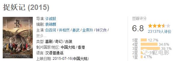 但是即使如此,即使它拿走了票房冠军,但是片子的口碑,豆瓣评分也只有6.8,更多的影迷是在怀疑为何《捉妖记》成色平平,却像开挂了一样。