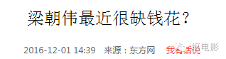 说到梁朝伟,当满世界的影帝、老戏骨都出来圈钱的时候,梁朝伟连半个新闻都没有。而就在这一个月内,梁朝伟代言小米、和王家卫合作《摆渡人》、加盟《捉妖记2》的新闻爆了个遍。