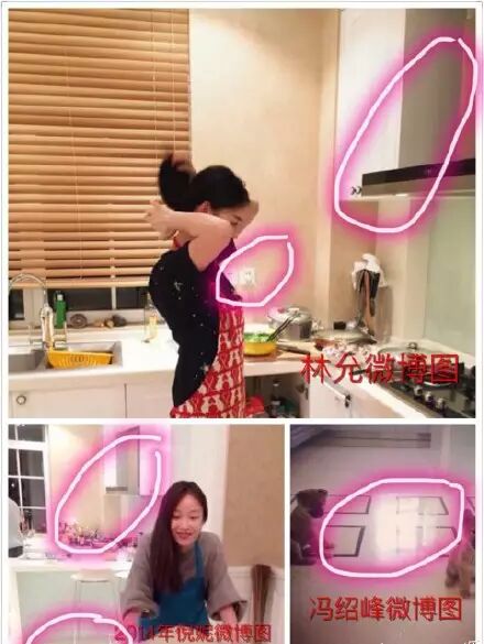 但是,眼尖的网友发现,照片中厨房背景和冯绍峰家很像,连地板砖都一毛一样。