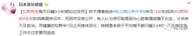日本的女子组合成员松野莉奈,因过度疲劳导致心脏问题猝死