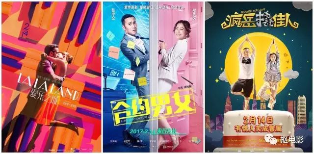 情人节当天,一共上映了3部电影,《爱乐之城》、《疯岳撬佳人》、《合约男女》。