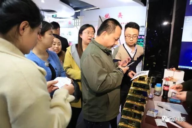 观影结束后,指点影业又为现场观众安排了抽奖环节,场面极为热烈,观众的参与度非常高。现场特别制作了50枚“金条”,并且每个都放有抠电影的代金券,其中两枚还放有终极大奖“抠电影储值卡”,“金条”的形式一方面是结合影片情节,让观众在观影后加深对影片印象,另一方面则凸显了电影真金不怕火炼的品质。
