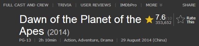 片中出现了上百只猩猩,每只猩猩平均拥有500万根毛发,这样的工作量和逼真程度完全撑起了一部以猩猩为主角的科幻大片。