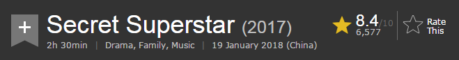 米叔去年的《摔跤吧!爸爸》凭借超高的口碑狂揽近13亿票房,成为印度片在华的最高纪录,这部电影也是抠姐2017年的最爱。