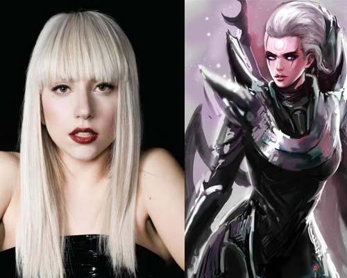 月女的脸部设计借用了Lady Gaga的脸 而月女最早的设计灵感其实是取自东方的一个苗条妹子,用设计师的话来讲便是--- “我们想为蕾欧娜设计一个陪衬,但我们没有想好如何设计她的样貌。于是我们反复斟酌,我们不想把她设计成一个满身盔甲的瑞文。事实上,我们的开发设想已经持续了大概一年。直到某一天我看动画时发现了设计灵感:一位来自东方的苗条妹子穿戴着一身戎装,她收拾了许多敌人,她还沉 默寡言。哇!这看起来很酷!于是我瞬间明白了应该如何创造她。”