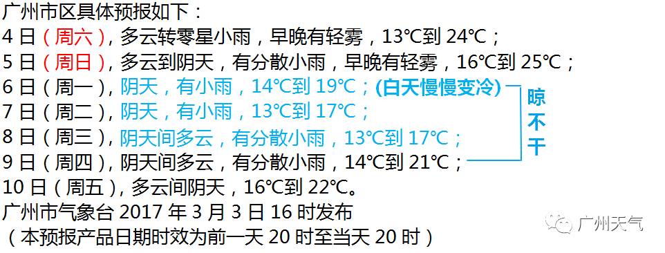 预计4-5日受偏南气流影响,广州云量增多,轻雾渐显,时有弱降水。6日起一股中等强度冷空气将给广州带来持续阴雨天气,过程日平均气温下降4~6℃。