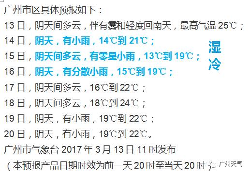 预计13日夜间起,广州自北向南转受较强冷空气影响,气温下降,并伴有小雨。