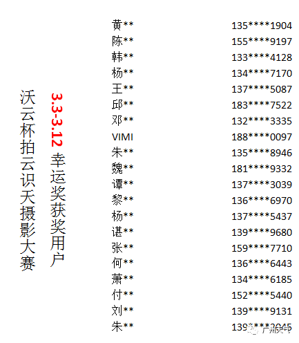 以上幸运用户将获得沃云U盘一个,奖品将于活动结束后统一寄出。
