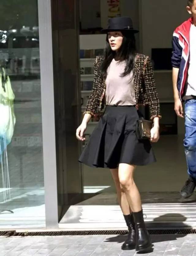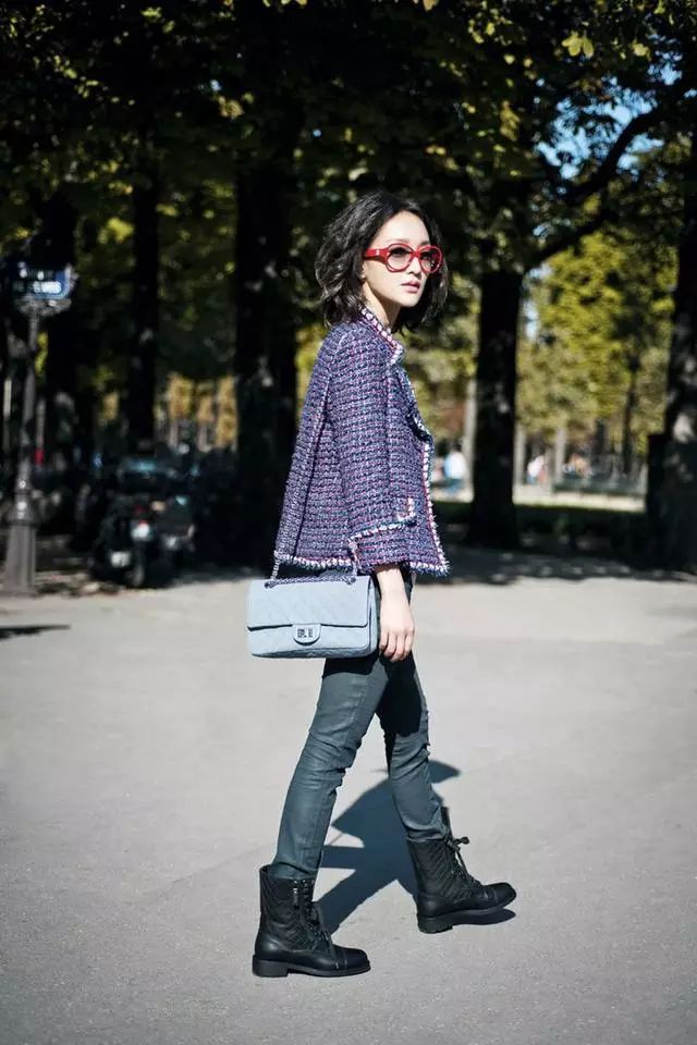 斜纹软呢的短外套搭配短裙也是不错的选择。切记短裙的长度不宜过短,膝上10-15公分最适宜。