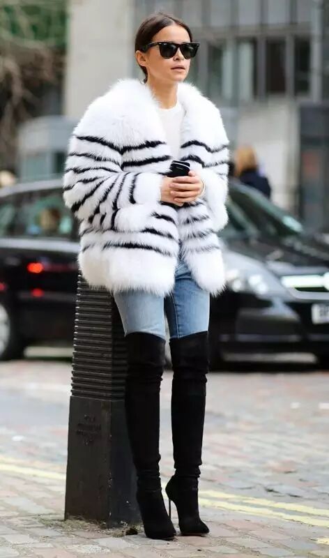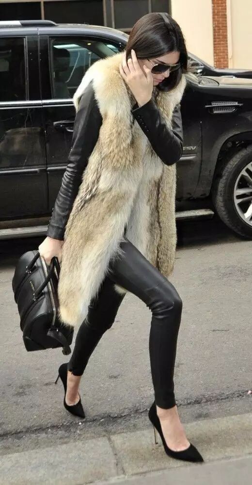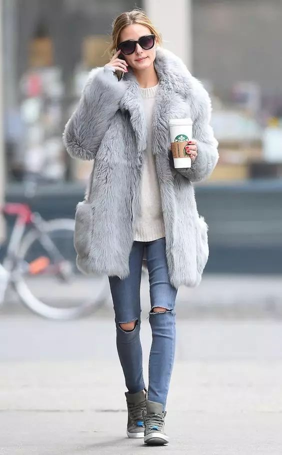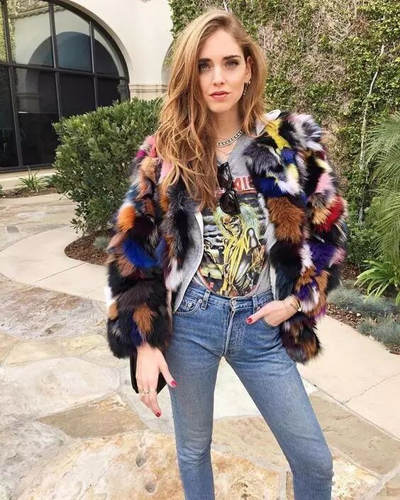 牛仔裤和机车皮靴可以消减皮草的奢华感,