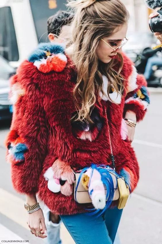 合成皮草,颜色丰富还能有很多图案拼接的变化,能够让皮草这个传统老气的单品立马变时尚,而且合成皮草价格美丽,保养也方便,穿上一件招摇过市,简直so easy!