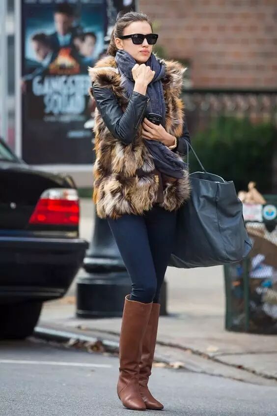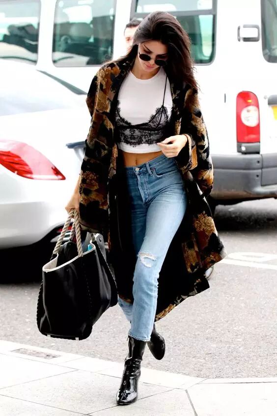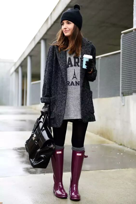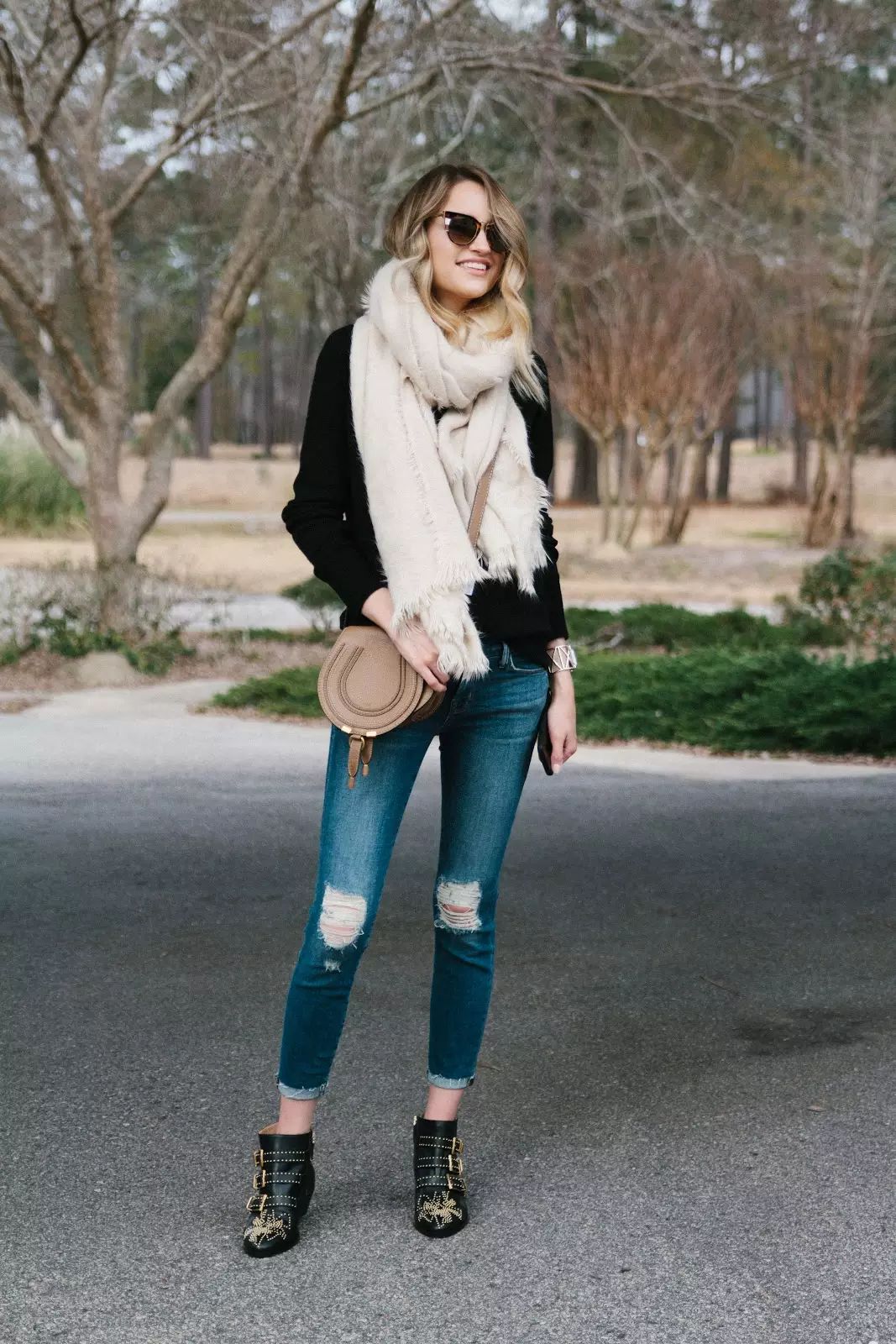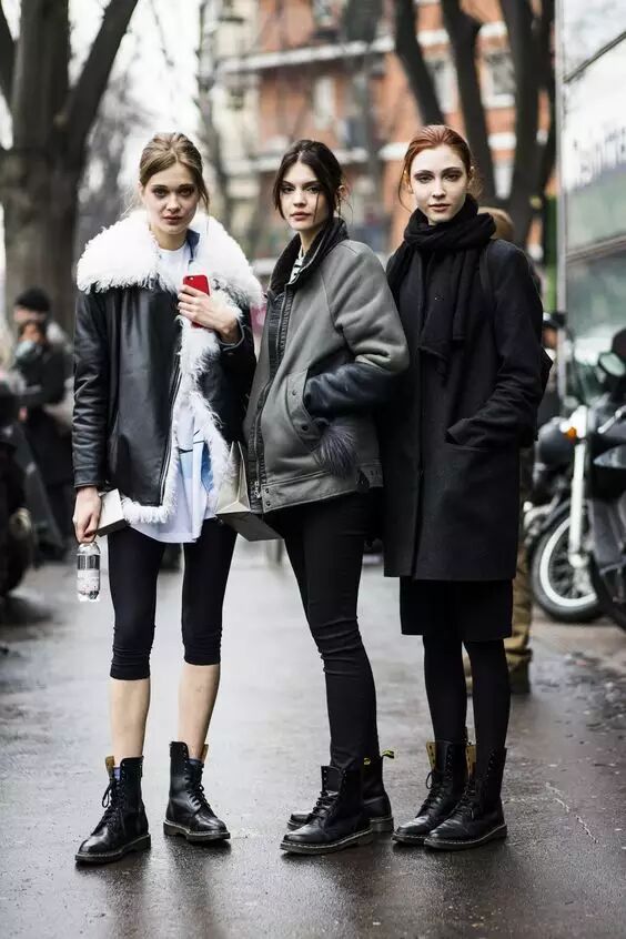 黑色马靴 烟灰牛仔裤 斗篷大衣