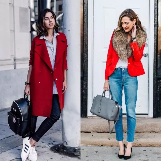 红色挎包喜气不突兀,瞬间点亮沉闷着装。