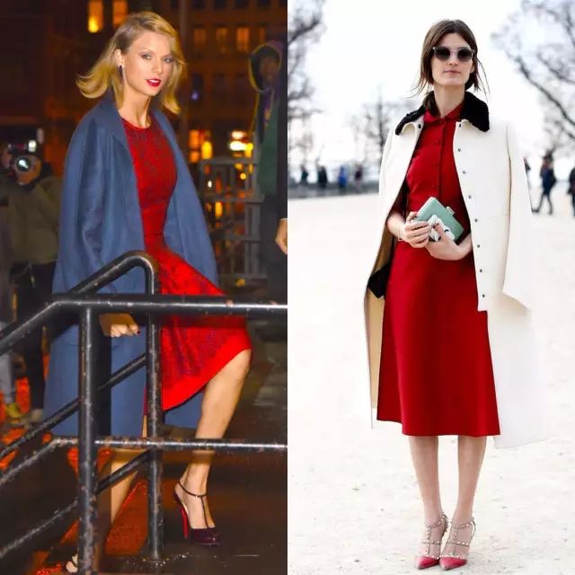 穿去party特别好看,红色斗篷裙则走的是乖巧名媛风。