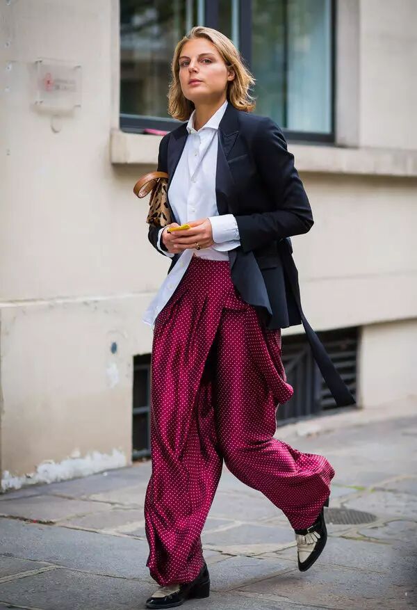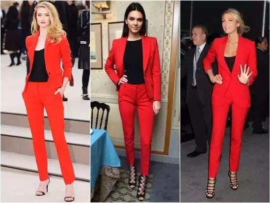 想要让西装看起来不那么呆板,就靠夸张的红裤子。